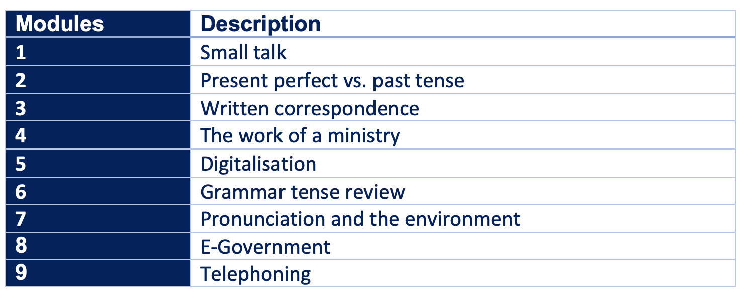 Englisch für politische Verwaltung hat alles. Hier finden Sie es auf 9 Module gekürzt. Wenn Sie Beamte sind, in der politische Verwaltung tätig sind oder auch selber politisch engagiert sind, dann sind Sie hier richtig. Das Ziel ist es, Englisch zu lernen und dabei eine Menge über die Businesswelt zu lernen – daher der Name!